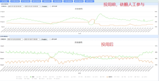 通过APC、空分云等先进技术实施,协助DCS控制系统,实现中大型空分的自主运行。系统比常规控制更稳定、更可靠,大幅减少人工参与,降低对操作经验的依赖性,还可实现中大型空分自主运行、自动变负荷、自动变工况等复杂操作。中大型空分自主运行系统可提高产品提取率、降低设备放散率,带来明显经济效益。客户使用反应效果良好,空分装置自动化水平显著提高,工况稳定性及经济性均明显提升。